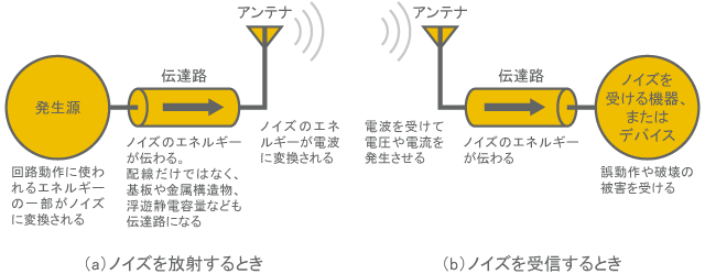 図1が示すように、ノイズの発生原理を整理すると以下の3つの要素で構成されています。